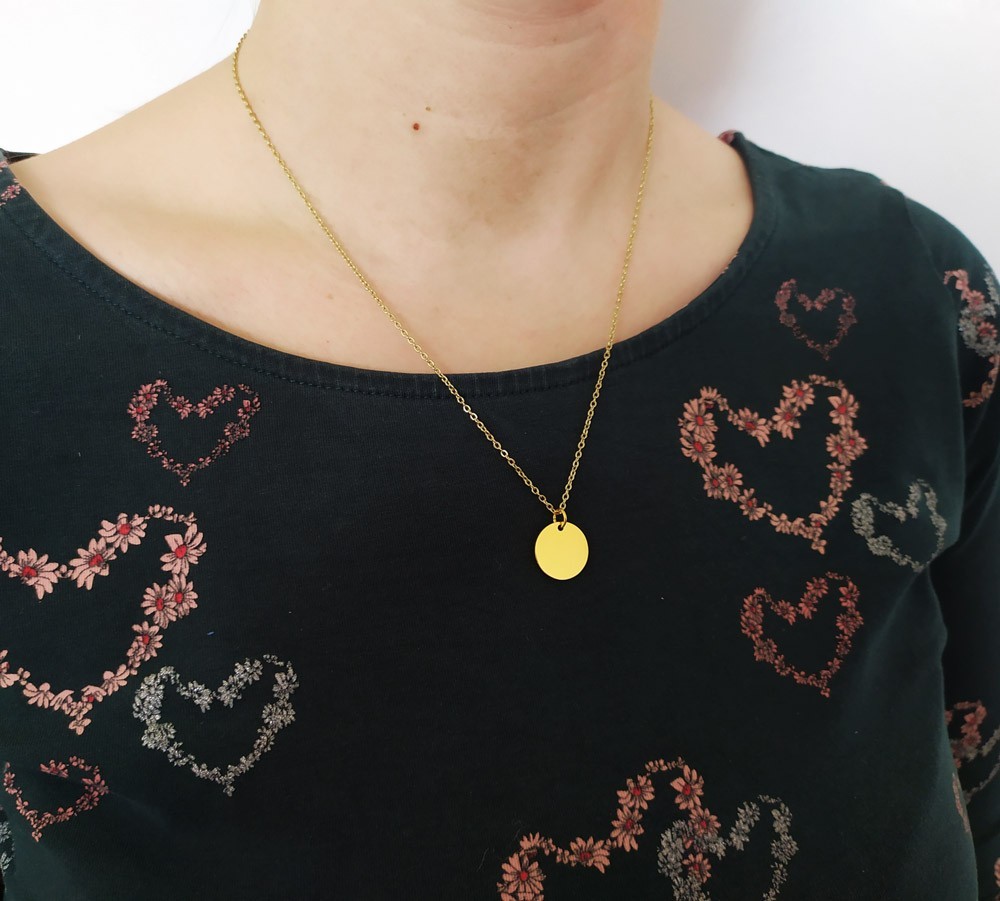 Dámsky oceľový náhrdelník na gravírovanie disk 14mm N003
