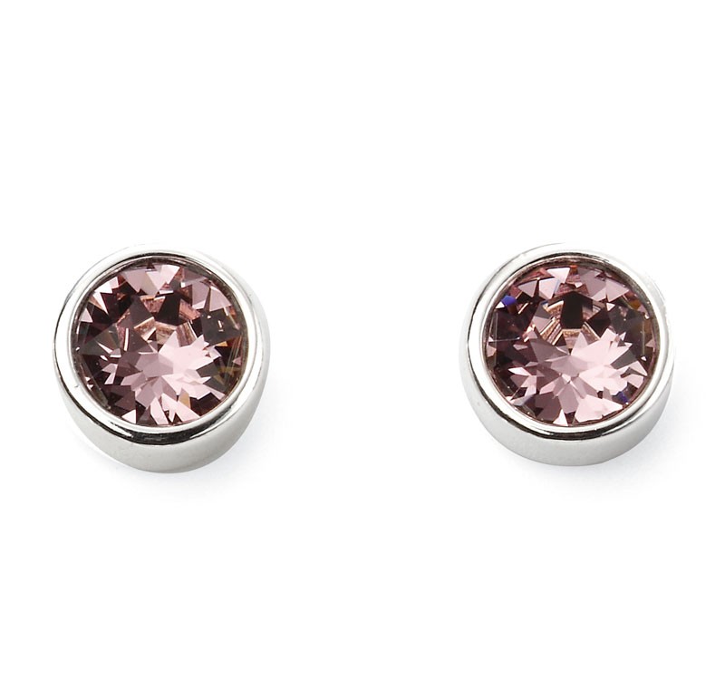 Strieborné náušnice - ružový zirkón (Október) E5565