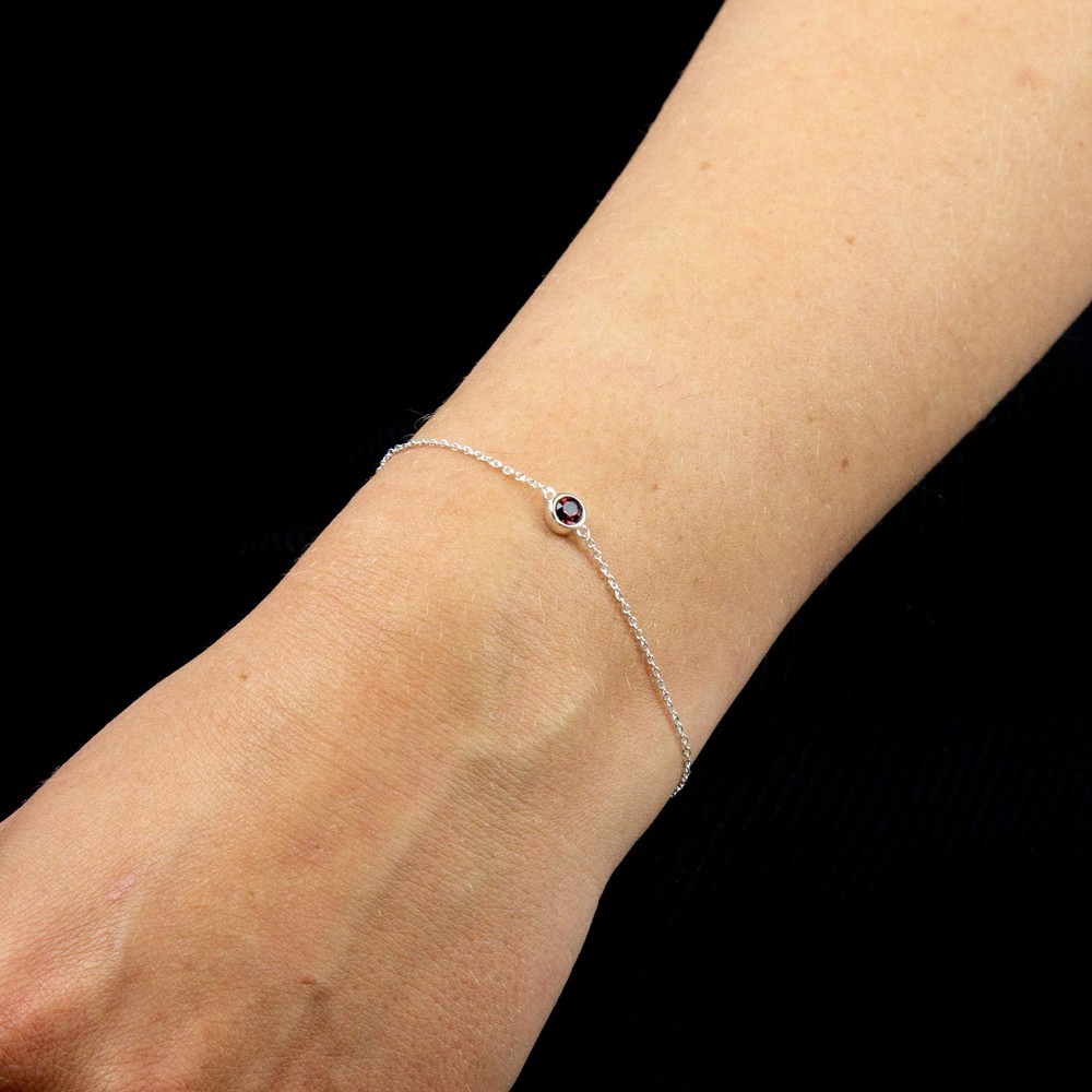 Strieborný náramok s kameňom narodenia Január ( červená burgundy)