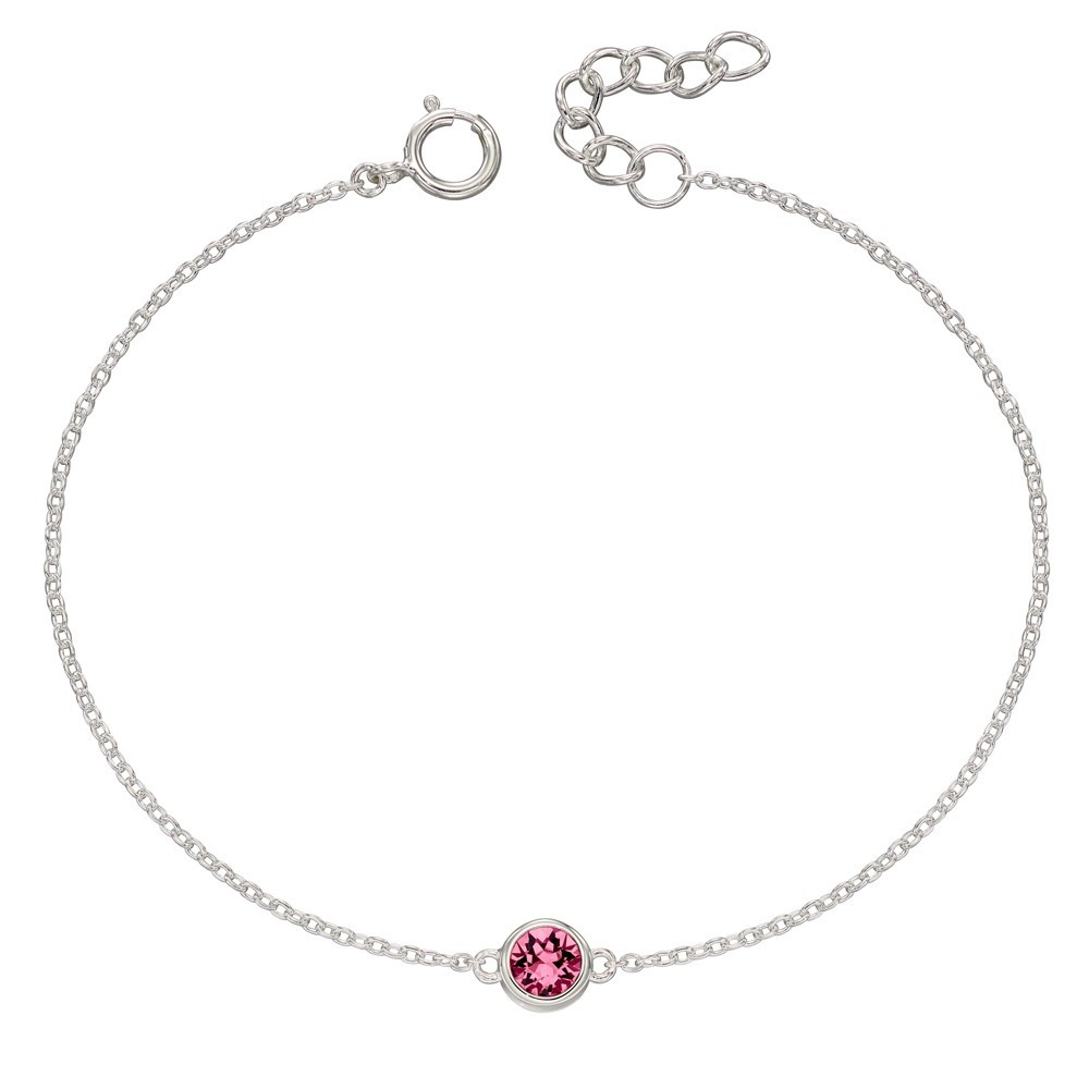 Strieborný náramok s kameňom narodenia Október (ružový zirkón)
