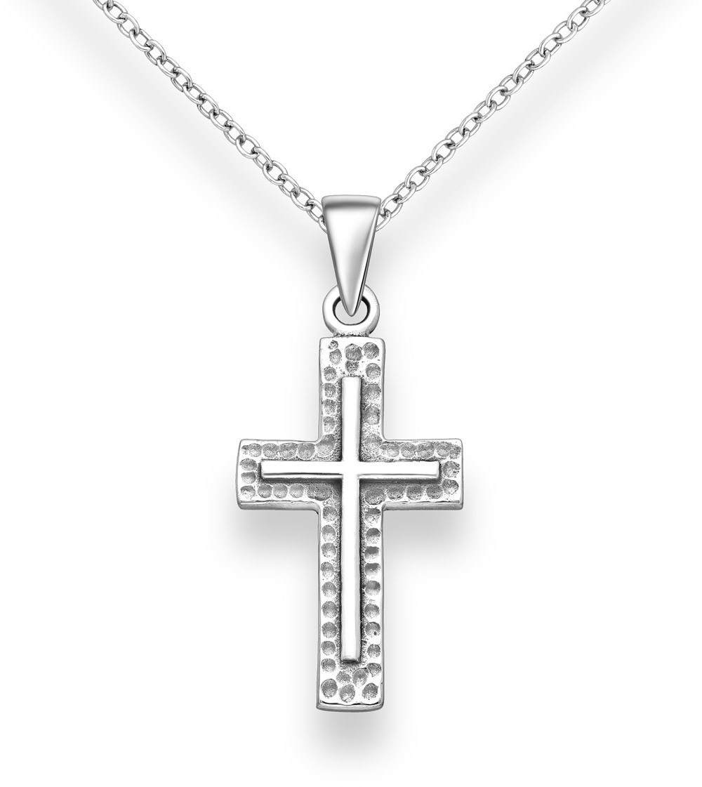 Strieborný prívesok Oxidized Hammered Cross