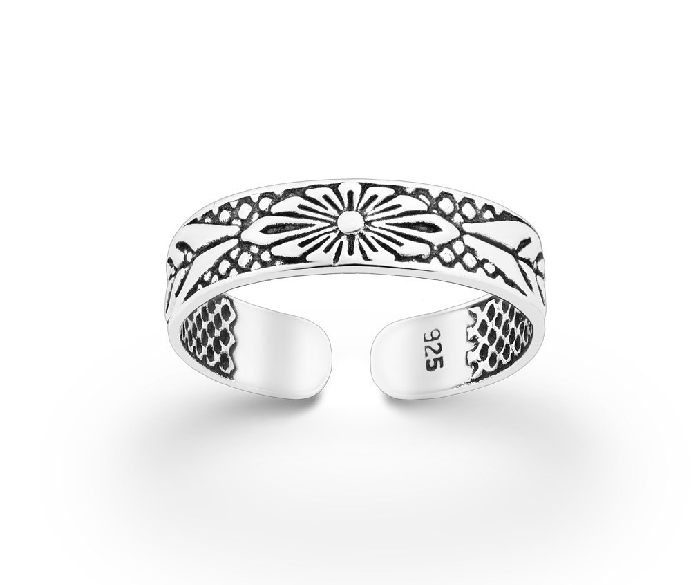 Strieborný prsteň na nohu Oxidized Flower