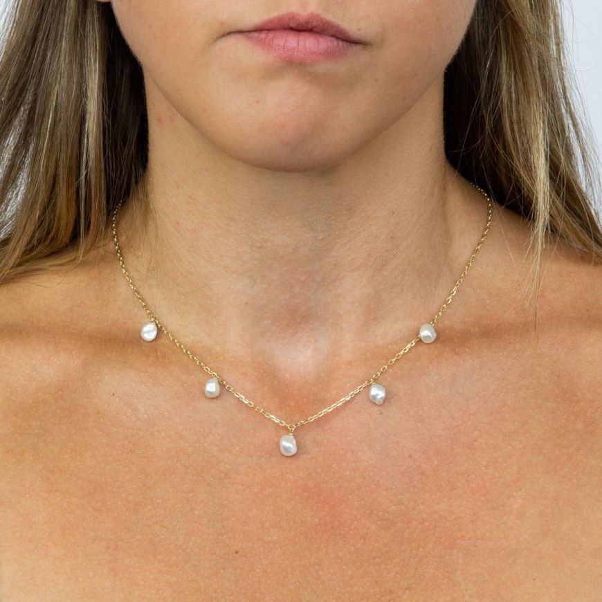 Zlatý náhrdelník Elements Gold s Keshi perlami